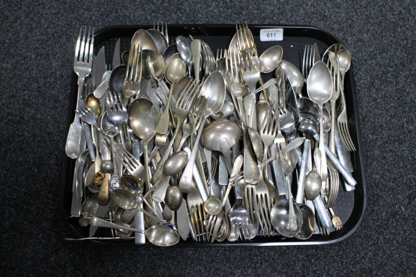 A tray of plated flatware