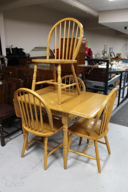 A plantation rubber wood drop leaf kitchen table and four chairs
