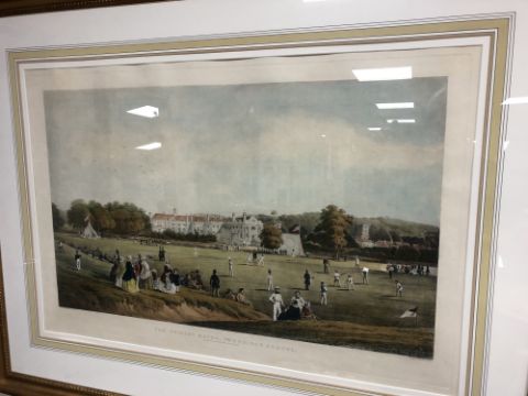 This is a 19th century engraving. The paper is curling somewhat at the top. The mount is in very good condition. The gilt frame has a few small nicks to the edge. Generally excellent condition.