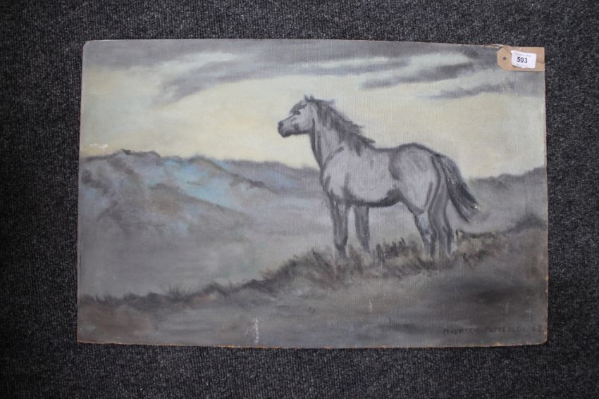 Maureen Patterson: Horse in open landscape, oil on board, signed, dated '68, 42cm by 65cm, unframed. CONDITION REPORT: *** George Patterson (1927 - 2017) was a celebrated artist of the North East and founded the famous Jarrow Art Group along with his friend and fellow painter Ken Stewart. Members of this group also included Kenneth Watts and Vince Ray who were both well-known local artists. George Patterson held a successful solo exhibition at The Customs House in South Shields and went on to develop a loyal following amongst the region's art collectors.