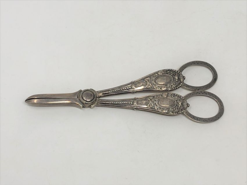 An ornate pair of Victorian silver candle snuffers, Sheffield 1880