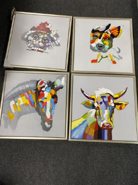 Four contemporary oils on canvas - animals, puppy, kitten, horse and cow