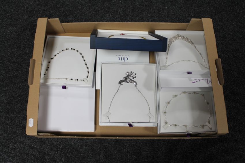 A box of five costume necklaces