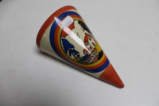 A Staffordshire Clarice Cliff style Chelsea Burslem conical wall pocket