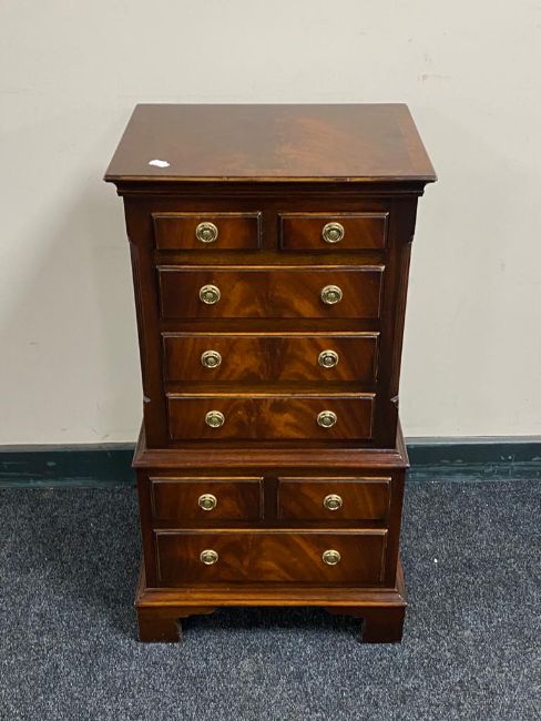 A Reprodux mahogany miniature chest, height 86 cm