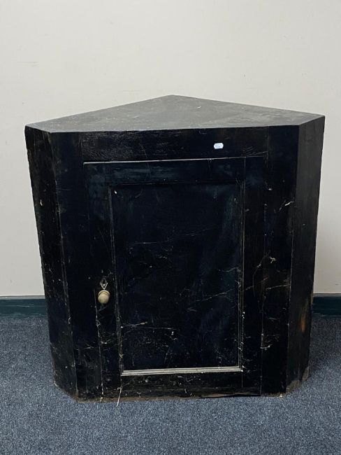 An antique painted pine corner cabinet