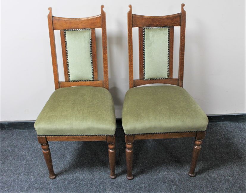 A pair of Edwardian oak dining chairs