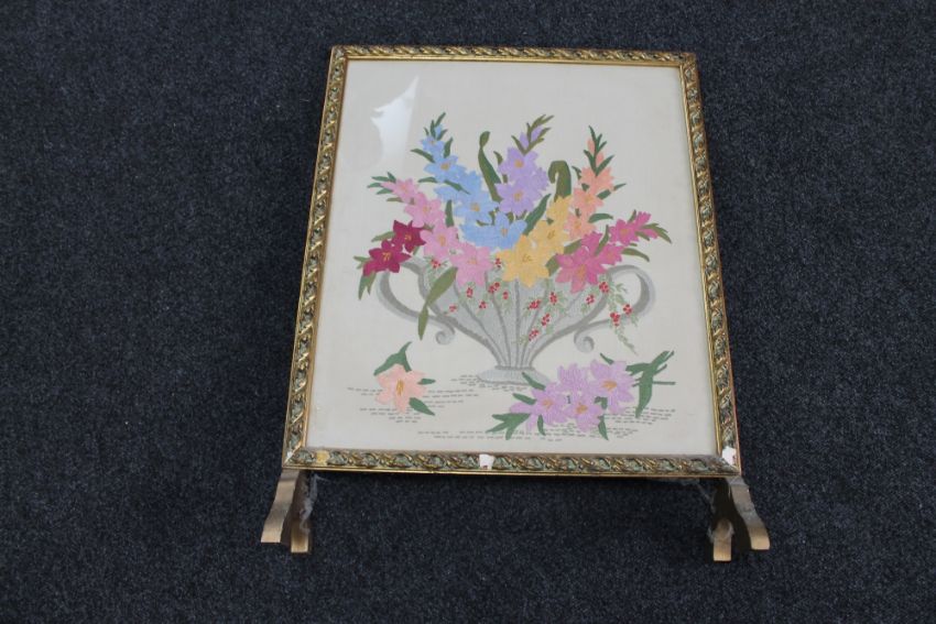 A mid 20th century New Home sewing machine and a gilt framed tapestry firescreen