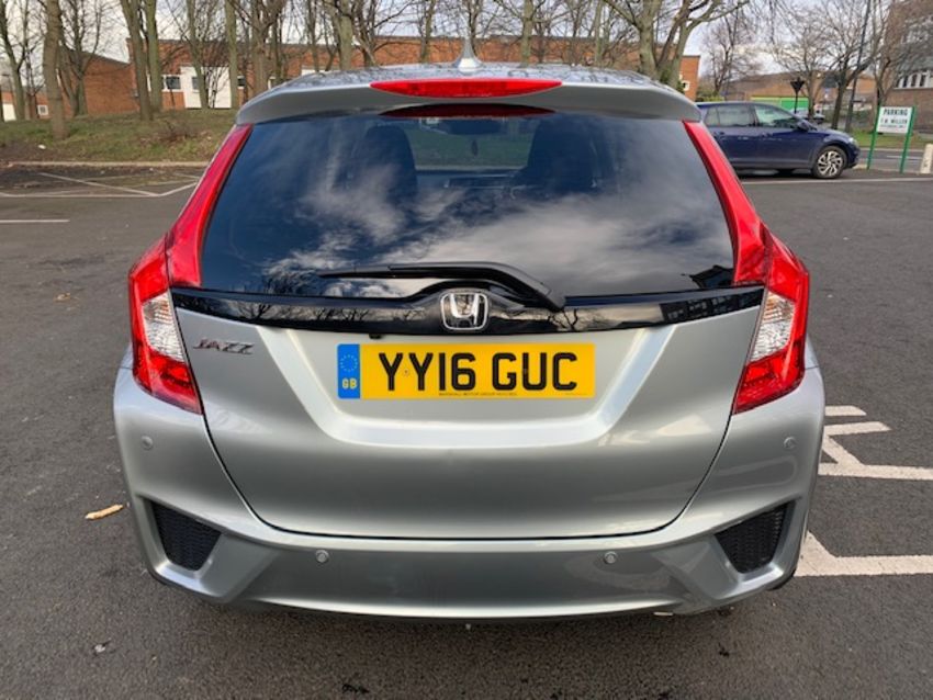 A Honda Jazz motor car, Model EX I-VTEC, silver, 1318 cc, petrol, five-door hatchback, automatic (with sport manual option & paddle shift), petrol, registration YY16 GUC, mileage 11,263, with reversing camera, black cloth interior, first registered 29 March 2016, 1318cc, no previous keepers, full service Honda dealership service history, MOT expires 28 March 2020, with V5 document, with owner's manual in Honda wallet, with two keys, wheel locking nut, fitted with a brand new battery. *** TO BE SOLD WITHOUT RESERVE ***