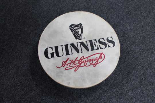 A Bodhran drum with Guinness advertisement