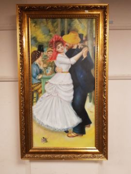 A 20th century gilt framed oil, two figures dancing, 49 cm x 99 cm