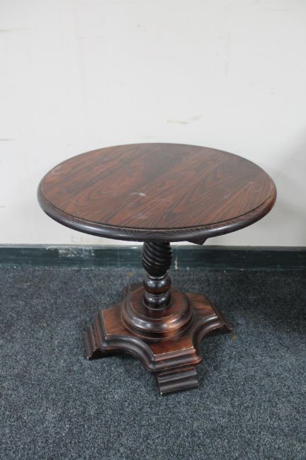 An oak effect pub pedestal coffee table, height 56 cm