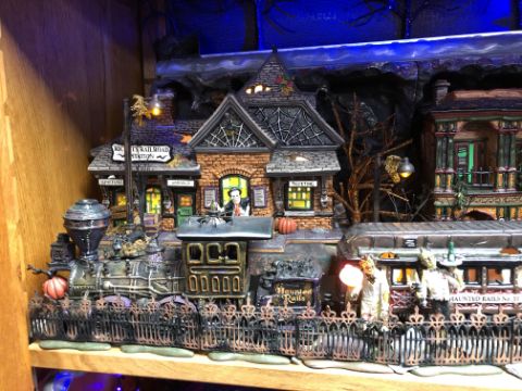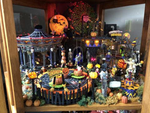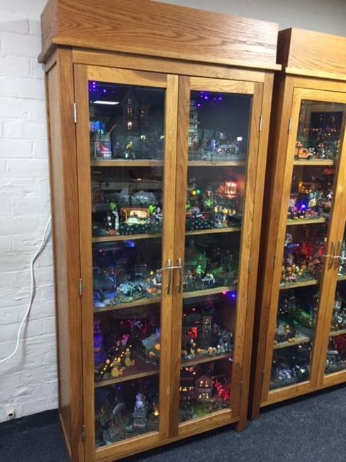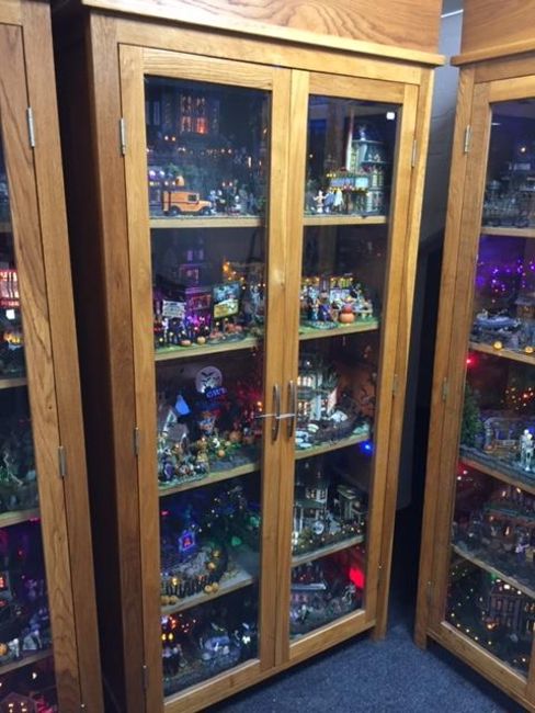 An incredible very impressive and extensive collection of Department 56 Snow Village Halloween Collection Series automaton diorama figures, currently displayed in four contemporary cabinets on multiple levels. Most large pieces within the displays produce different sounds and movements. There are an enormous number of items in this lot, many of the items are retired and out of issue. The full inventory extends to more than: Creepy's Pet Shop Time to celebrate (rare limited ), Halloween Dance (animated with lights and sounds music dancing) Costumes for sale (illuminated), Treats for the kids (set of 3), Lighting the jack O lanterns Haunted tree house, Captain Black Barts ghost, Halloween Hayride, Forever on guard, Haunted Harvest, Pick your own pumpkins, A gravely haunting 2004 limited, Lighting up Halloween, Black kittens for sale, Caramel apple stand, Brew ha ha, Cant wait for Halloween, A gravely haunting 2005, Haunted Tower Tours (animated flying gargoyle), A vampires best friend, Little space explorers, A gravely haunting 2006, Bats in my belfry, Dr lunatic the mad scientist , Topping off the scarecrow, Haunted Taxi, Getting candy for Halloween, Dead Creek Mill Delivery, A Gravely Haunting 2007, Candy Kids, How about our Lay -Away plan?, Madame Zelda at Work , Time to feed the monsters, A Grimsly family, A Gravely Haunting 2008, Grimsly's Family Crypt, Made for each other, Midnights last ride, Don't forget to tip the server, Deranged chickens, An Ax to grind, Gathering Pumpkins, Campbells Trick or Treat, Halloween Kids, Trick or Treat Kids set, Sideshow super stars, Halloween Hot Rod, Strangers Beware, Bobbing for apples, Spinning Pumpkins, Department 56 Snow Village Space Oddity 2001 (set Issued 2000 /retired 2001 RARE), Department 56 Boo Mansion Time to celebrate( sounds light) Scaredy Cat Ferris Wheel Halloween Village ( animated with sounds and lights), Hauntsburg House Haunted front yard Graveyard (illuminated), Department 56 Snow Village Swinging Ghoulies (spins turns lights), Department 56 Halloween water tower , Department 56 Halloween Village Swinging Skeleton Animated x3, retired, Department 56 Skeleton Crew fishing boat, Department 56 Halloween Series Resting My Bones, Department 56 Animated Haunted Grave Yard Skeleton x2, retired, Department 56 Skeleton Crew boat, Department 56 lit spooky trees, Department 56 Haunted Outhouse (illuminated), Department 56 Creepy Creek Bridge, Department 56 Village express delivery truck witch passenger, Department 56 Snow Village Halloween clock tower RARE, D56 snow village The Grim Reaper, Department 56 Grimsly's tool shed Department 56 Bone to be Wild, Gothic street lamps various sets/designs, Corn stalks Lantern, Halloween street lamps , Orange twinkle bright trees , Purple twinkle bright trees, Spooky wrought iron fences, Grimsly's Garage , The original Snow Village Halloween A Grimsly Family Witch Crash (head spins), Escape from the Crypt (animated flying skeleton), Department 56 lit Spooky trees, Spooky village sign, Spooky totem, Spooky black glitter trees , Bone to be wild, Candy Kids, Taking bones for walk (animated), Spooky mail boxes, Bobbing for Apples, Phantom of the Organ (animated, sounds, lights), Department 56 A Gravely Haunting 2006, Preparing for Halloween, Halloween Parade (set of three), Department 56 Snow Village Made for each other, Department 56 Snow Village Git offa my train, Gothic Gate, Halloween Street lamps, Mummy Mischief (animated spinning), A Grave Undertaker, Times a wastin', Department 56 hearse sell your soul, Rock-A-bye Vampire (animated and lights), Haunted rails crossing signs (X2) lights, Animated Hocus Pocus Witch (animated and lights), Halloween Monsters Rock Band, The Zombies band figurine, Bone Appetite, Haunted coal car set (animated on track), Halloween Festival Billboard, Swamp Boat Ride (animated on lake), Twinkle bright hedges, Bats street lights, Practice makes perfect witch, Topping off the scarecrow, Little space explorers, Harvest Gourds, Pumpkin street lamps, Lighted spooky eyeball hedge, Skull lawn lights, Witch rides (animated turns & spins), Service with a smile, Chilled to the bone, Animated Haunted Wall (characters move ), Purple glitter sisal trees, Green glitter sisal trees, Cursed Fountain (blood lights up), Haunted rails sleeper car (illuminated), String of pumpkin lights (lots), Jack O lanterns (lots), Halloween fences, Halloween Pumpkin Stand, Spooky bare branch trees , Autumn Halloween landscape, Candy corn string lights, Gravely landscape set of 8 Lighted Halloween scarecrows, Spooky black glitter trees, Skull street lamps, Black cat string lights, Scary twisted trees, Lit graveyard trees, Dinner is served, Little ghouls field trip, Lazy bones, Haunted rails water tower, Halloween yard decorations lots, Halloween decorating set, Scary street lights, Spooky spider trees, Department 56 A Harvest Feast, Hold Still (set of 2).