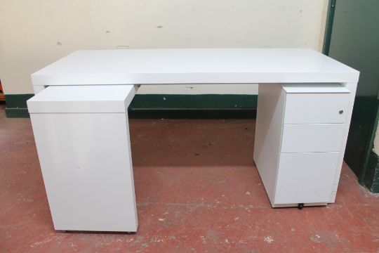 A white office L-shaped desk