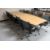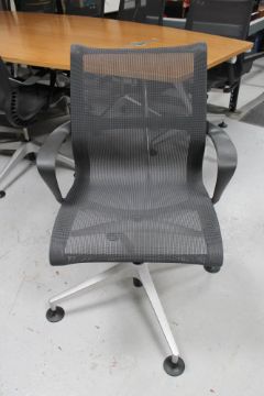 A twin section boardroom table in a walnut finish, length 320 cm, and a set of ten swivel armchairs upholstered in a mesh fabric on chrome bases