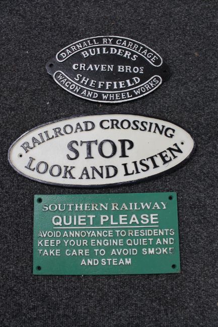 Three cast iron railway notices