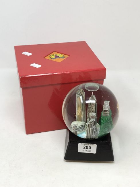 A Shanghai Tang musical snow globe, boxed.