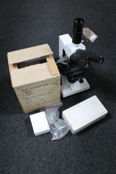 A Zenit Microlab series electric microscope with accessories