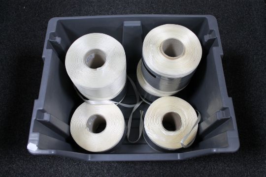 A box of six spools of binding ribbon