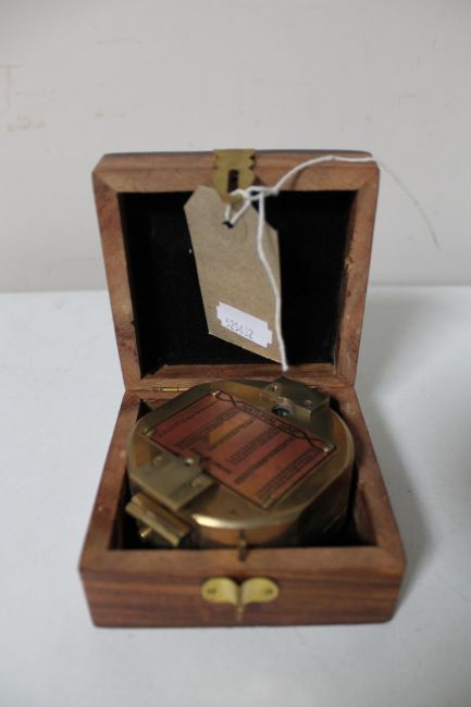 A brass cased natural sine compass by Stanley of London in fitted box