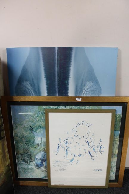 A framed Van Gogh print, wall canvas and a framed museum gallery poster