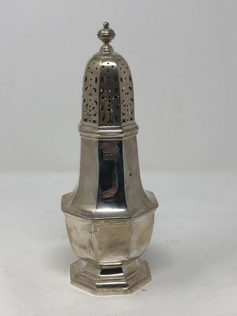 A fine quality large silver sugar castor, 301g, height 21cm.