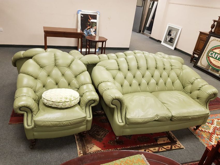 A four piece pistachio green Tetrad button leather lounge suite comprising of three seater, two seater and pair of armchairs (4)