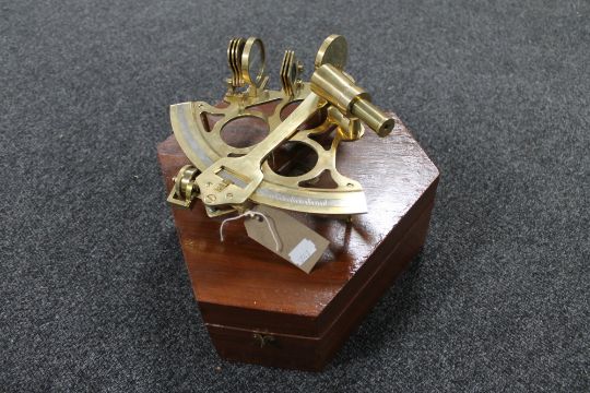 A brass ship's sextant in fitted wooden box