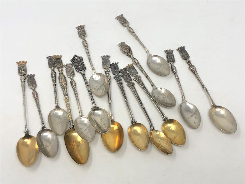 Assorted French silver and silver gilt town and other spoons. (15)