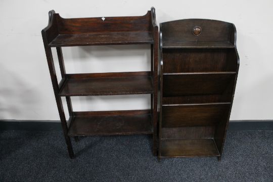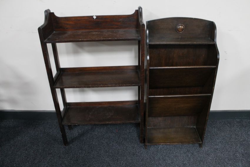 Two sets of oak open bookshelves