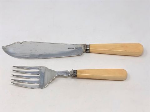 A pair of Victorian silver and ivory fish servers, Robert Hutton, Sheffield 1874