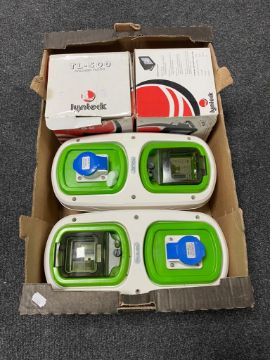 A box of two Rolec 240v electric boxes together with two halogen flood lights