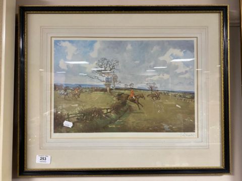 After Lionel Edwards : The Hunt, reproduction in colours, signed in the margin, framed.