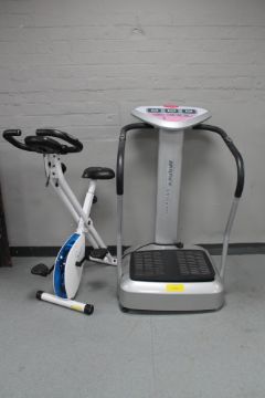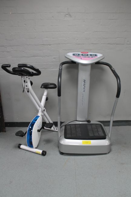 An Marcy vibro plate together with a Davina exercise bike