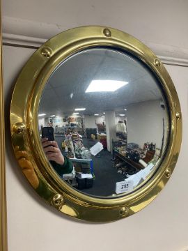 A brass mounted convex porthole mirror