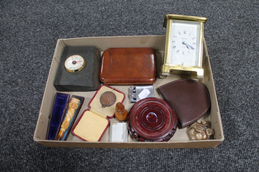 A collection of Royal Life Saving medal, Ronson lighter, eight day brass carriage clock etc
