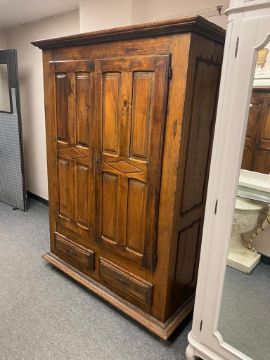 A rustic French double door cabinet fitted with two drawers, width 134 cm