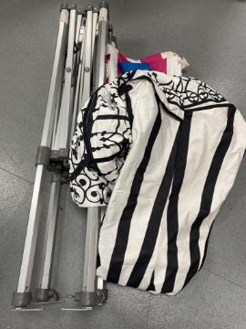 A folding metal gazebo with cover and bag of accessories