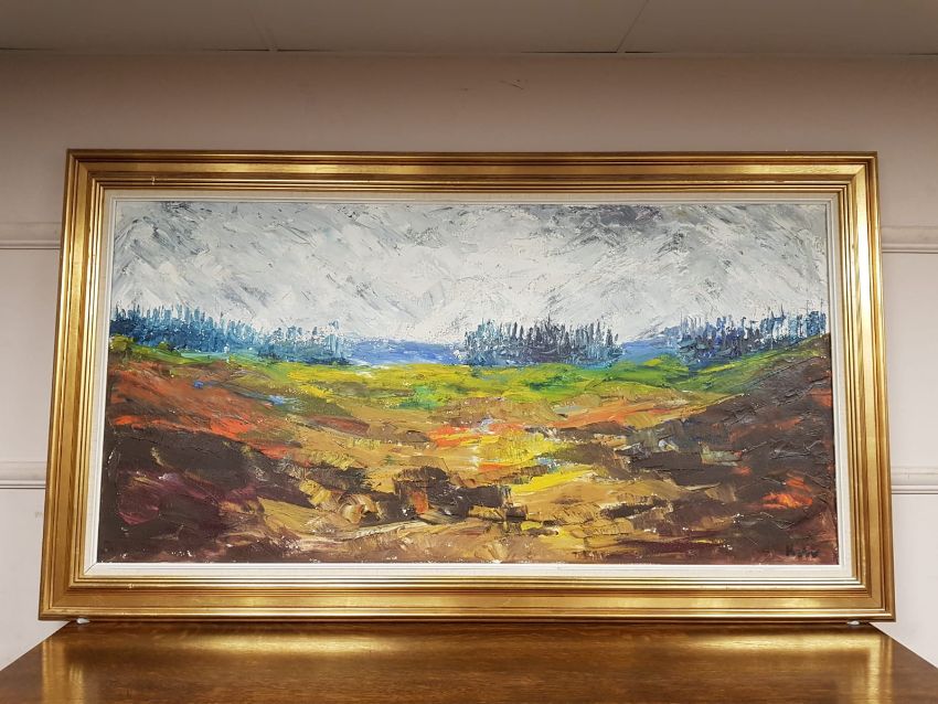 Continental school : abstract landscape, oil on canvas, 120 cm x 59 cm
