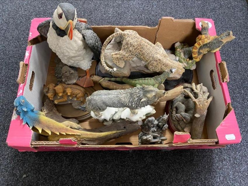 A box of assorted animal ornaments - Border Fine Arts River Hideaway etc