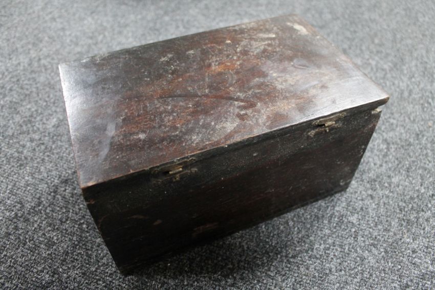 An antique box with lift out tray