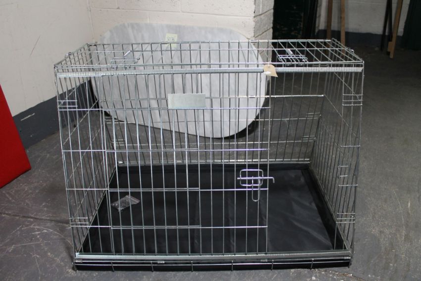 A folding metal dog cage, width 97cm