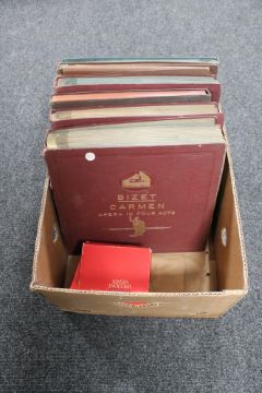 A box of six albums of vinyl 78's, operas, together with a Peterson viewer
