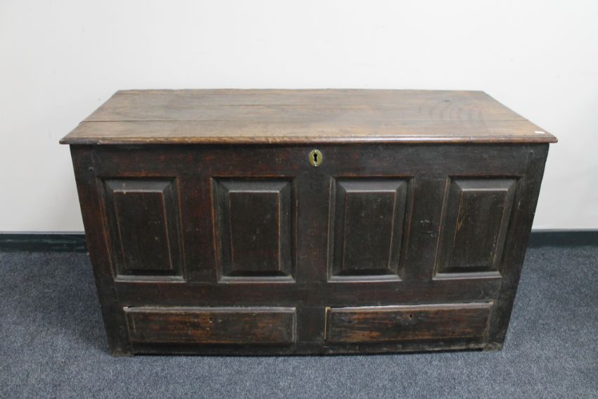 A George III oak coffer fitted with two drawers (a/f)