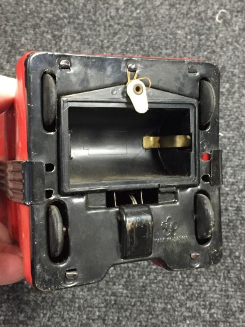 Missing battery cover of talking robot. Item is un-tested although appears to be in time aged good condition.