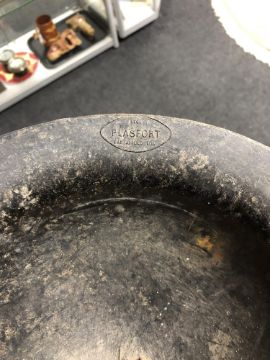 One is metal, the other is plastic marked 'Plasfort'. The latter has lost its lining. See images.