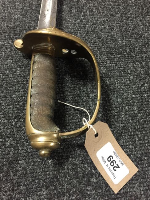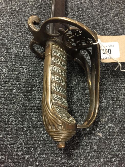 A 19th century naval officer's sword with brass guard
