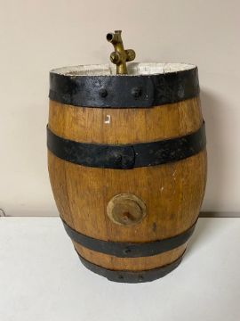 An oak coopered sherry barrel with brass tap