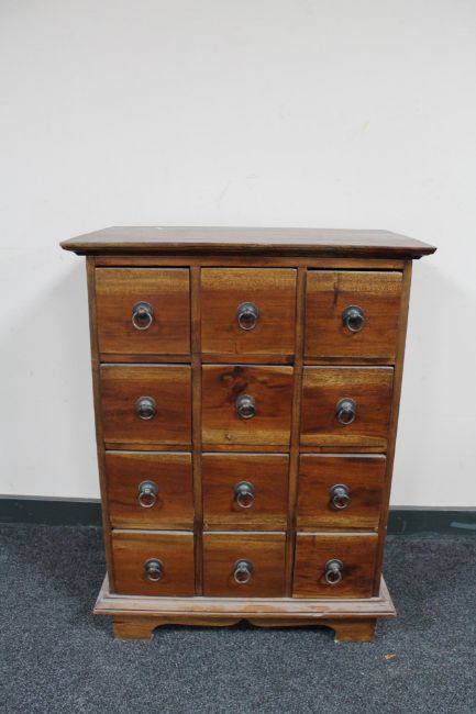 An Eastern hardwood twelve drawer chest