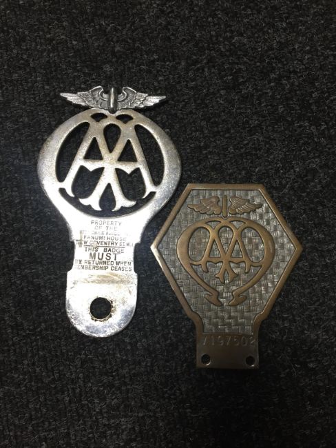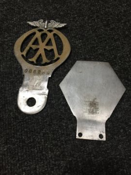 A box of three vintage car badges AA and RAC